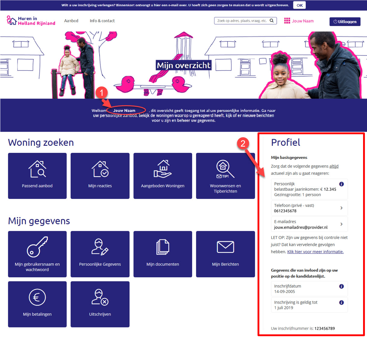 Zonder aanlevering van de gevraagde en geldige gegevens zal het woningaanbod worden ingetrokken.